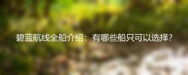 碧蓝航线全船介绍:有哪些船只可以选择?