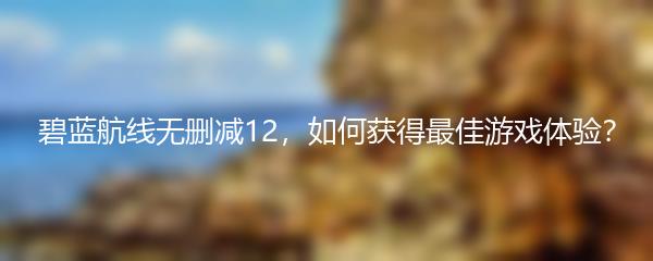 碧蓝航线是一款备受欢迎的游戏,而无删减的版本让玩家能够获得更真实的游戏体验。那么,如何才能获得最佳的碧蓝航线无删减12游戏体验呢?下面是小编为大家整理的攻略: