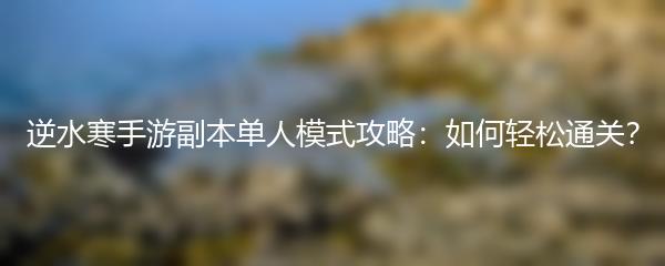 逆水寒手游副本单人模式攻略:如何轻松通关?