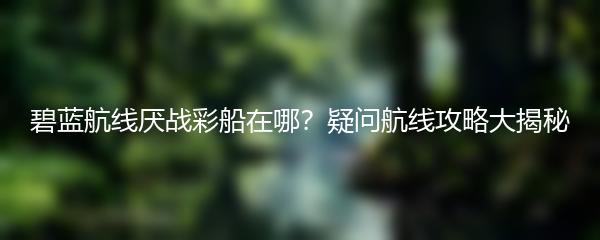 碧蓝航线是一款备受瞩目的游戏,其中厌战彩船更是众多玩家追逐的目标。但是,厌战彩船究竟在哪呢?本篇攻略将为您揭晓。