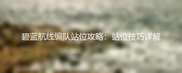 以上就是小编为大家带来的碧蓝航线编队站位攻略。希望这些技巧对各位指挥官有所帮助,祝大家在碧蓝航线的世界中取得更好的战绩!