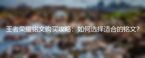 以上就是小编为大家带来的王者荣耀铭文购买攻略。希望对大家在游戏中选择合适的铭文有所帮助。祝各位玩家游戏愉快!