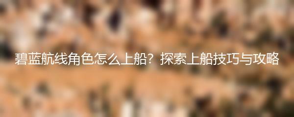 碧蓝航线是一款备受玩家喜爱的手机游戏,其中的角色扮演着非常重要的角色。但是,对于一些新玩家来说,碧蓝航线角色怎么上船可能会是一个问题。下面就为大家分享一些上船技巧与攻略,帮助大家更好地解决这个问题。