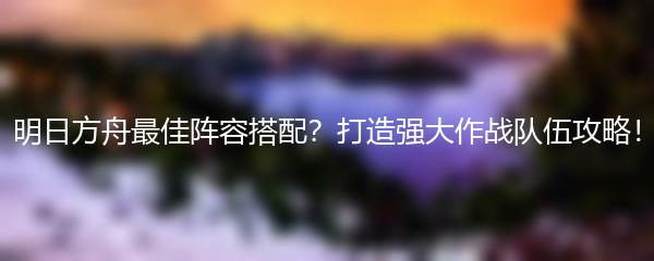 明日方舟最佳阵容搭配?打造强大作战队伍攻略!