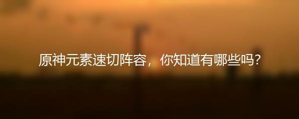 原神元素速切阵容攻略