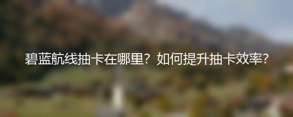 碧蓝航线抽卡在哪里?如何提升抽卡效率?