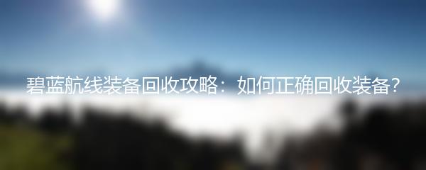 碧蓝航线装备回收攻略:如何正确回收装备?