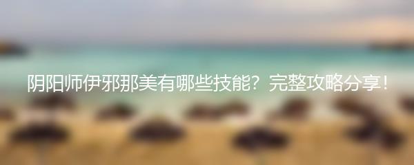以上就是小编为大家带来的《阴阳师伊邪那美有哪些技能?完整攻略分享!》的内容,希望对大家有所帮助!