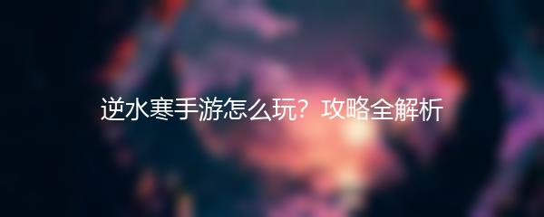 逆水寒手游是一款备受玩家喜爱的角色扮演游戏。想要在这个游戏中取得好成绩,了解一些基本的玩法和技巧是必要的。下面将为您详细介绍怎么玩逆水寒手游的攻略。