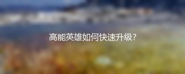 攻略:高能英雄如何快速升级?