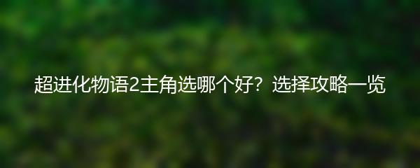 以上就是小编为大家带来的超进化物语2主角选择攻略。希望这篇攻略能够帮助到您,祝您在游戏中玩得开心!