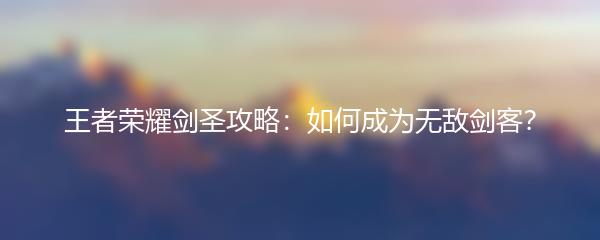 以上就是小编为大家带来的王者荣耀剑圣攻略,希望对大家在游戏中使用剑圣有所帮助。通过了解剑圣的技能特点、合理选择装备和掌握打法技巧,相信你也能成为无敌的剑客!加油!
