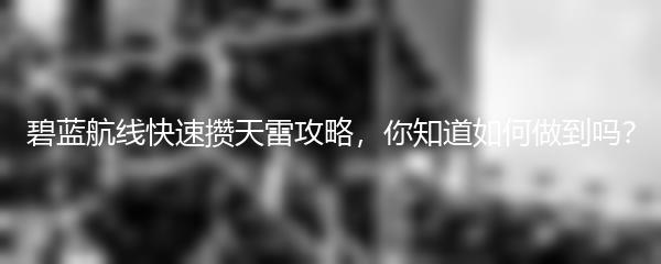 以上就是小编为大家带来的碧蓝航线快速攒天雷的攻略。希望这些方法和技巧能够帮助到你,让你快速积攒到足够的天雷,提升游戏体验。