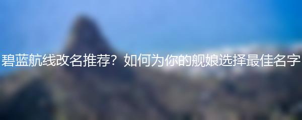 碧蓝航线改名推荐?如何为你的舰娘选择最佳名字