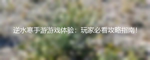 以上就是小编为大家带来的逆水寒手游游戏体验攻略,希望对大家有所帮助。快来加入这个精彩的游戏世界吧!