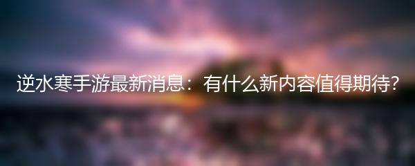 以上就是小编为大家带来的逆水寒手游最新消息的详细报道。相信新的更新将给玩家带来更多惊喜和乐趣,让我们一起期待吧!
