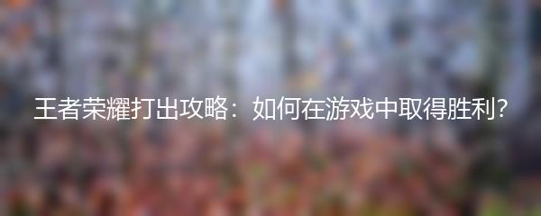 王者荣耀打出攻略:如何在游戏中取得胜利?