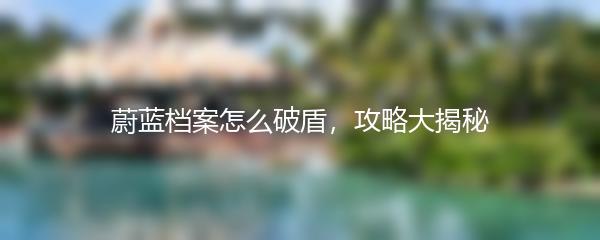 蔚蓝是一款备受玩家喜爱的游戏,而破盾则是游戏中的一个重要挑战。那么,究竟如何才能破解这个难题呢?本篇攻略将为您一一揭秘。