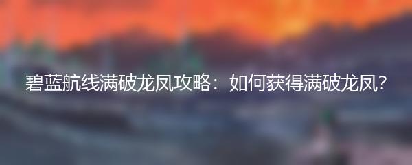 碧蓝航线满破龙凤攻略:如何获得满破龙凤?