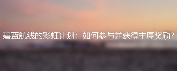 碧蓝航线的彩虹计划:如何参与并获得丰厚奖励?