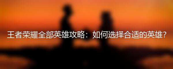 王者荣耀全部英雄攻略:如何选择合适的英雄?