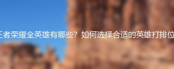 王者荣耀全英雄有哪些?如何选择合适的英雄打排位?