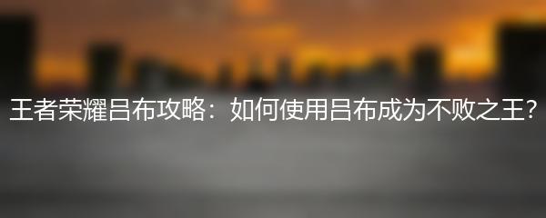 王者荣耀吕布攻略:如何使用吕布成为不败之王?