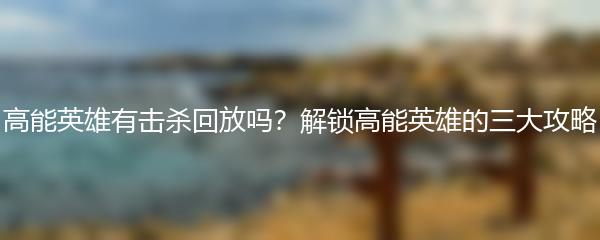 想要成为一名高能英雄?你一定想知道高能英雄有击杀回放吗?在这篇攻略文章中,我们将为你揭开高能英雄的秘密,并分享三大解锁高能英雄的攻略。