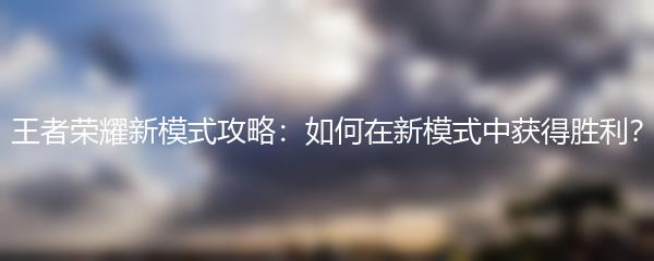 以上就是小编为大家带来的王者荣耀新模式攻略:如何在新模式中获得胜利的精彩内容。