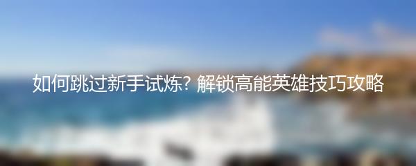 新手试炼是每个高能英雄的第一步,但有时候我们并不想重复这个过程。那么如何跳过新手试炼呢?本文将为你提供一些解锁高能英雄的技巧和攻略。