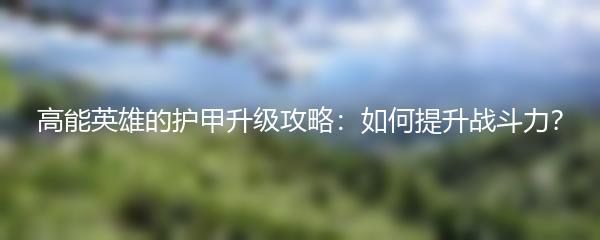 高能英雄的护甲升级攻略:如何提升战斗力?