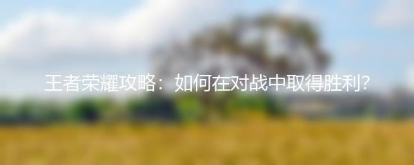 以上就是小编为大家带来的王者荣耀攻略:如何在对战中取得胜利?希望对大家有所帮助!在游戏中多多练习,提高自己的技术水平,相信你会成为一名出色的王者!