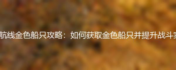 以上就是碧蓝航线金色船只攻略的相关内容。希望这些技巧能帮助到各位玩家,提升战斗实力,收集更多珍稀的金色船只。