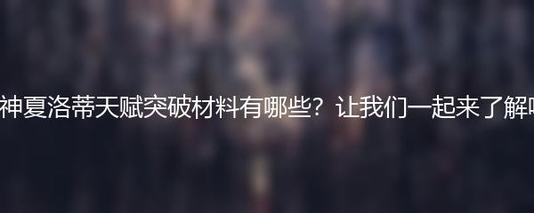 以上就是小编为大家带来的原神夏洛蒂天赋突破材料的介绍。希望这篇攻略对大家有所帮助,祝各位玩家游戏愉快!