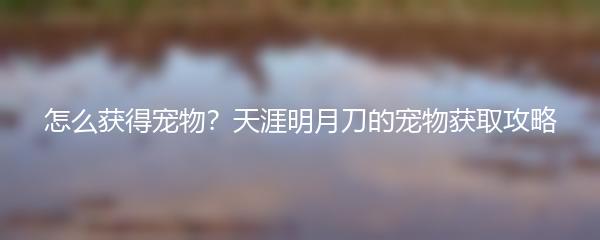 天涯明月刀是一款备受玩家喜爱的武侠网游,宠物系统是游戏中重要的一部分。你想知道怎么获得宠物吗?下面就为你提供一份详细的宠物获取攻略。