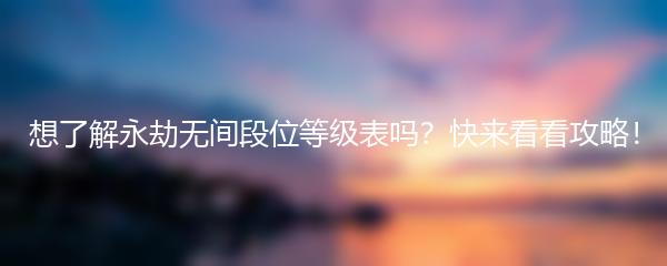 结语:以上就是小编为大家带来的想了解永劫无间段位等级表吗?快来看看攻略!