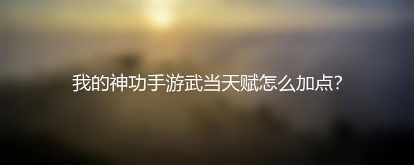 以上就是小编为大家带来的《我的神功手游武当天赋怎么加点?》的攻略。希望对大家有所帮助,快去尝试一下吧!