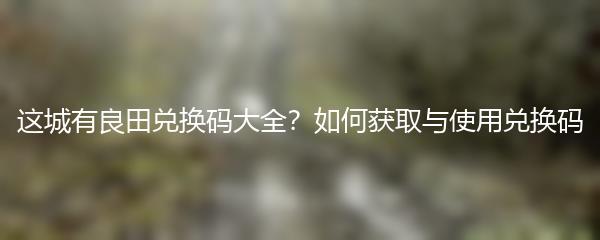 以上就是小编为大家带来的《这城有良田兑换码大全?如何获取与使用兑换码》的攻略内容。希望通过本篇攻略,能够帮助到各位玩家更好地了解和使用兑换码,享受游戏带来的乐趣与惊喜!