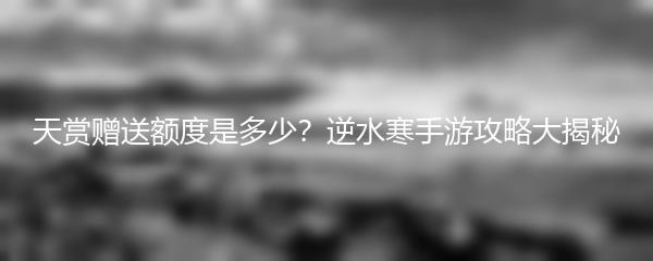 以上就是小编为大家带来的逆水寒手游天赏赠送额度的攻略。熟练掌握天赏赠送额度获取方式和合理利用方法,将会使你在游戏中更具竞争力。希望本篇攻略能够帮到大家,祝大家在逆水寒手游中取得更大的成就!