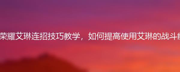 王者荣耀艾琳连招技巧教学,如何提高使用艾琳的战斗能力?