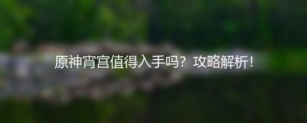 以上就是小编为大家带来的《原神宵宫值得入手吗?攻略解析!》。希望能对大家了解宵宫角色提供帮助,祝大家游戏愉快!