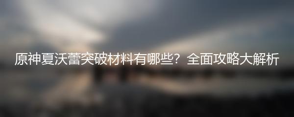 以上就是夏沃蕾突破的全部攻略了。希望这篇文章对大家有所帮助。愿各位冒险者在原神的世界中,探索出更多的奇迹!