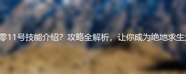 绝区零11号是绝地求生中一项重要的技能,它可以帮助玩家在游戏中取得优势。想要成为绝地求生大神吗?那么就来看看绝区零11号技能的介绍和攻略吧!