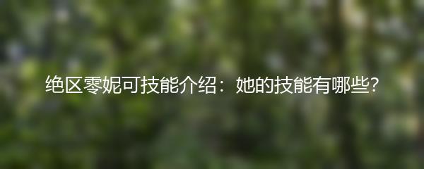 绝区零妮可是一名非常强力的游戏角色,她的技能使得她在战斗中具有很高的爆发和生存能力。下面就为大家介绍一下绝区零妮可的技能。