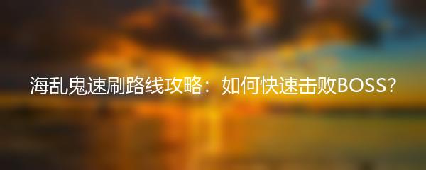海乱鬼速是一款充满挑战的动作游戏,玩家需要在海洋世界中击败各种强大的鬼怪BOSS。本文将为您介绍海乱鬼速刷路线的攻略,帮助您快速击败BOSS。