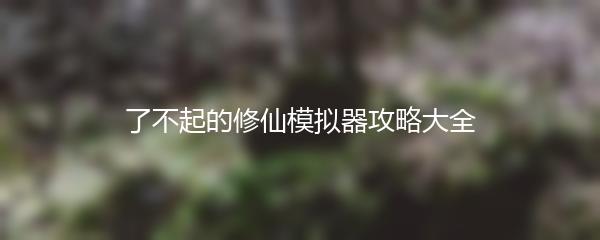 以上就是小编为大家带来的《了不起的修仙模拟器攻略大全》。希望这些攻略能够帮助您在游戏中取得更多的收获和乐趣。