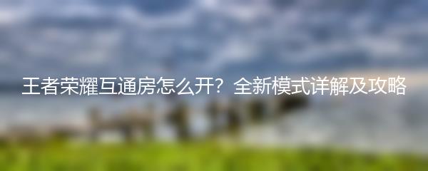 以上就是小编为大家带来的《王者荣耀互通房怎么开?全新模式详解及攻略》。希望对大家有所帮助,祝您玩得开心!