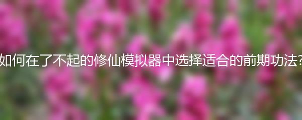 总之,在了不起的修仙模拟器中,选择适合的前期功法需要根据自身的喜好和角色的定位来进行选择。如果你喜欢进攻型角色,那么可以选择[关键词1]或[关键词4];如果你喜欢防御型角色,可以选择[关键词2];如果你喜欢速度与敏捷性,可以选择[关键词3];如果你喜欢控制性角色,可以选择[关键词5]。希望以上推荐能够帮助到大家,祝各位玩家在了不起的修仙模拟器中取得好成绩!