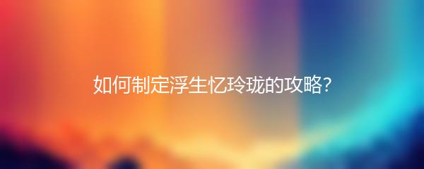 总之,制定浮生忆玲珑的攻略并不是一件简单的任务,需要认真研究游戏规则和系统,分析游戏内容,制定目标和策略,学习技巧和心得,并不断实践和调整。相信通过以上的方法,你一定能制定出一份有效的攻略,为自己在浮生忆玲珑中取得好成绩。