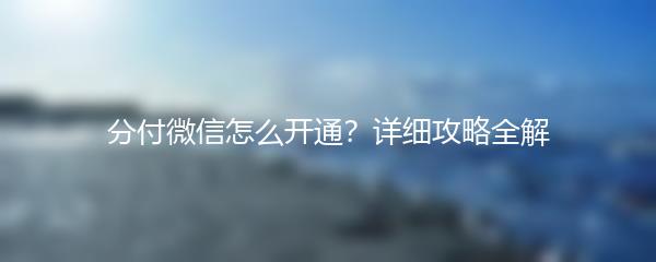 以上就是小编为大家带来的详细攻略,相信通过这篇文章,您已经了解了如何开通和使用分付微信,快来试试吧!